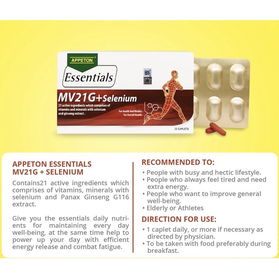 Appeton MV21g + Selenium is a dietary supplement designed to support overall health and well-being, particularly for individuals seeking additional vitamins and minerals in their diet.